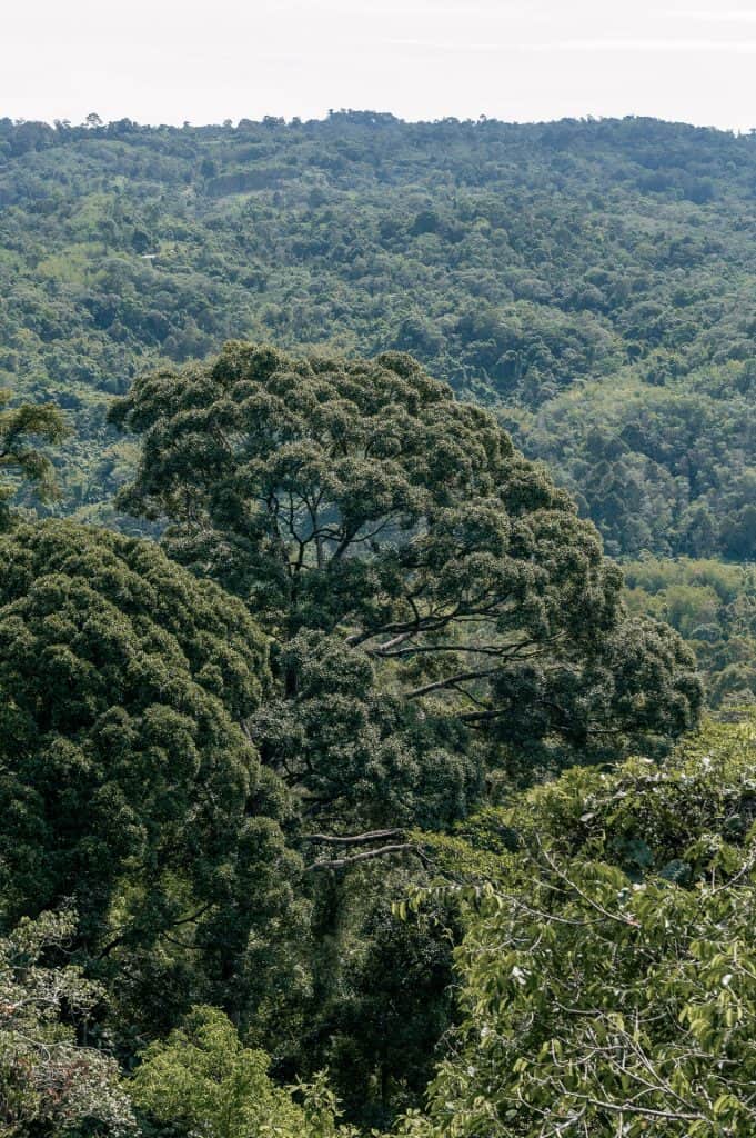 There are three connected circuits, with a total length of about 373m and heights reaching up to 41m, depending on the terrain below. The canopy walkway consists of rope and steel suspension bridges, reinforced with side netting for safety. The first section is relatively short, around 20m, and partially enclosed by trees, making it a gentle introduction. As you progress, the walkways become longer and more exposed. At certain points, the forest opens up to reveal sweeping views of the surrounding landscape and distant mountains.