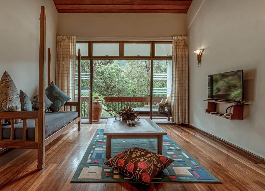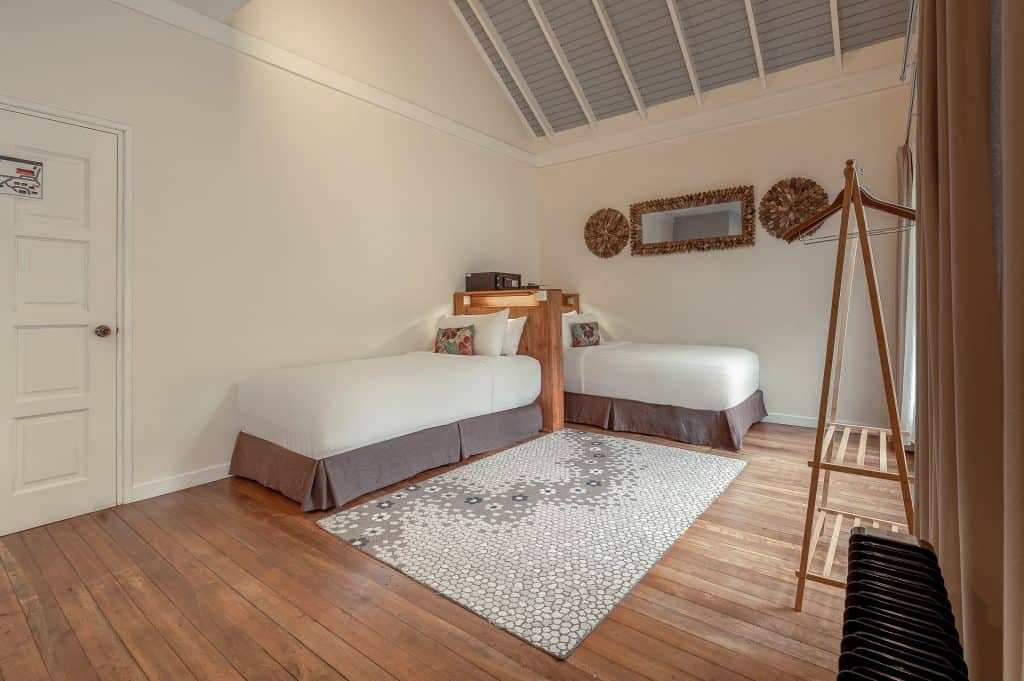 Surrounded by lush greenery, the 312 sq ft Nepenthes Suite blends naturally into the rainforest environment. With muted tones, a pantry, and a lounge area, it feels more secluded and tranquil. Choose between a twin-bed or a king-bed suite. The king bed suite includes a fireplace, making it especially appealing for guests who enjoy cool evenings and a more nature-focused stay.